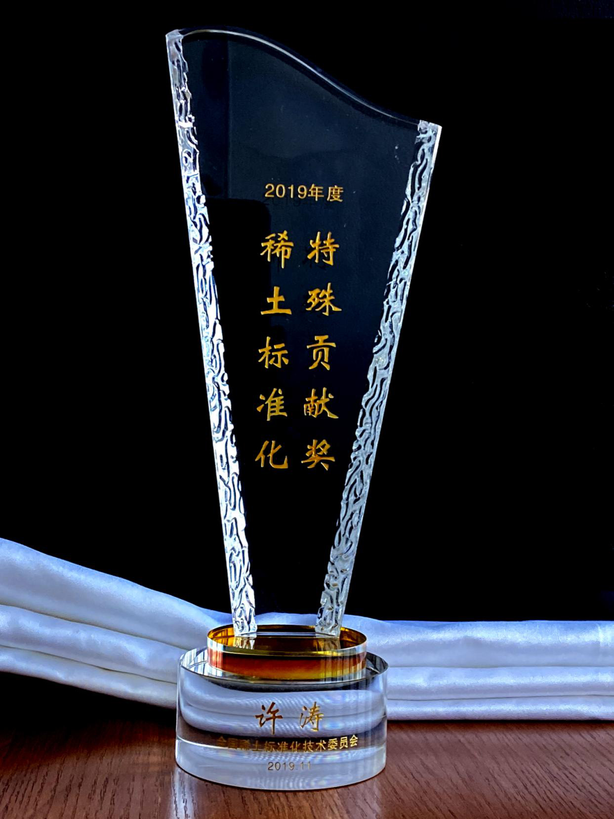 许涛总经理在35年的工作历程中,曾任稀标委项目专家、副主任委员等职务。作为一名技术人员及管理人员,围绕稀土相关的国家及行业基础标准、产品标准、分析方法标准等做了大量工作,并在ISO标准的起草中发挥了积极作用。多次被评为全国稀土标准化工作先进工作者,负责起草的多项标准获得了中国有色金属总公司科学技术一、二、三等奖。在这些荣誉的背后,是许涛总经理用自身的坚守与付出,为我国稀土产业标准化工作作出的突出贡献。
