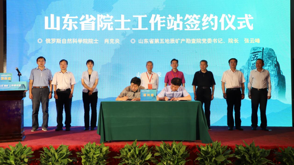 会议还举行了山东省院士工作站签约仪式,山东地矿五院党委书记、院长张云峰与肖克炎院士共同签署《山东省院士工作站共建协议》。