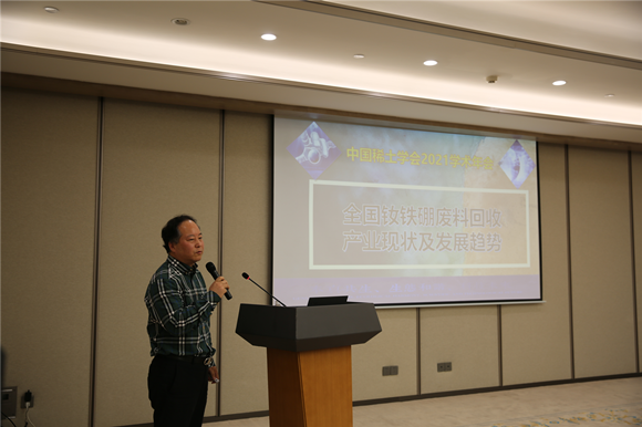 中稀天马新材料科技股份有限公司董事长林平做了《全国钕铁硼废料回收产业现状及发展趋势》的报告