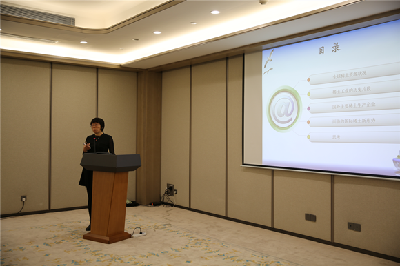盛和资源控股股份有限公司董事长助理王延莉做了《新产业格局下中国稀土发展的机遇与挑战》的报告