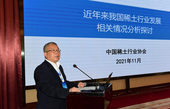 中国稀土行业协会副会长、秘书长杨文浩介绍近年来稀土行业整体运行情