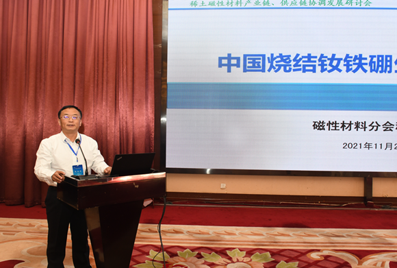 中国稀土行业协会磁性材料分会秘书长林安利介绍稀土磁性材料及其应用领域生产运行情况