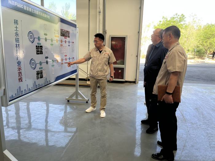 调研组一行首先来到国家稀土功能材料创新中心中试厂房,了解各条中试线项目布局与建设情况。