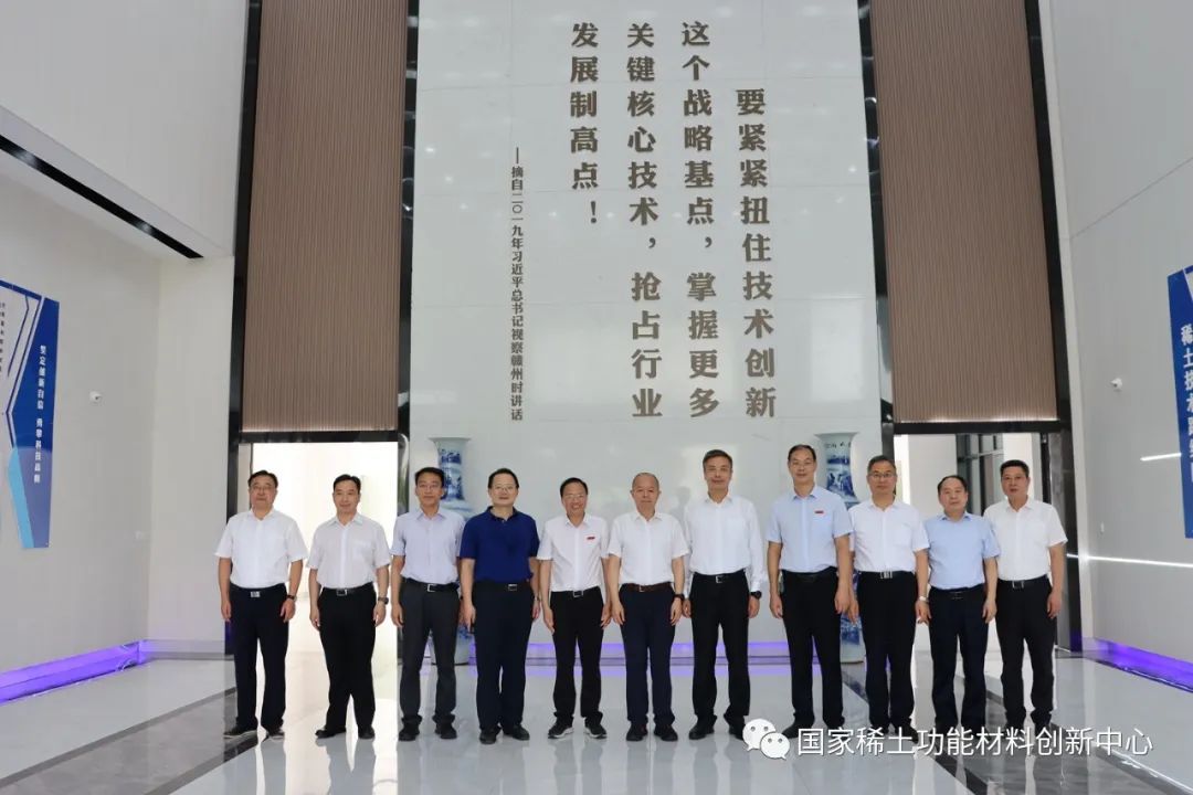 6月28日下午,工信部党组成员、副部长王江平一行莅临国家稀土功能材料创新中心调研。江西省委常委、副省长任珠峰、江西省政府副秘书长熊科平、江西省工信厅党组书记、厅长杨贵平、赣州市委常委、副市长何琦、赣州市政府副秘书长亓伟扬、江西理工大学党委副书记、校长温和瑞、校党委常委、副校长廖春发,市、区直相关单位等主要负责同志以及我中心董事长王伟生、副总经理叶信宇陪同调研。