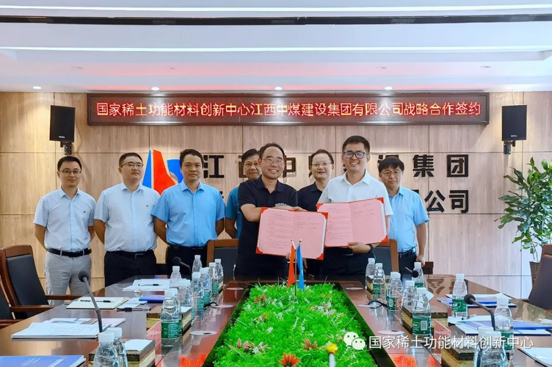 7月27日,国家稀土功能材料创新中心与江西中煤建设集团有限公司举行战略合作签约仪式。赣州建筑工业化有限公司董事长曾思智和国家中心副总经理叶信宇代表双方签约。江西中煤建设集团有限公司副总经理王雪飞、国家稀土功能材料创新中心董事长王伟生出席并见证签约。