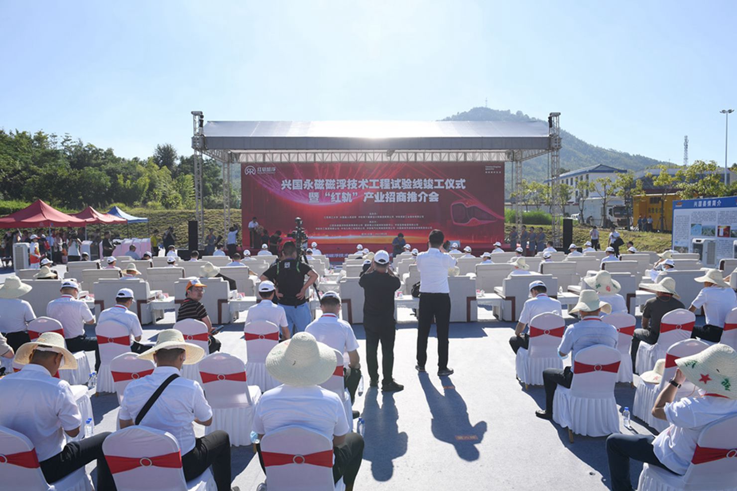8月9日上午,由江西理工大学牵头,与兴国县人民政府联合中铁六院、中铁工业、国家稀土功能材料创新中心共同完成的永磁磁浮轨道交通工程试验线——“红轨”在赣州市兴国县顺利建成。中国工程院院士、原副院长干勇、中国工程院院士张文海、李卫、杨春和、中国科学院院士沈保根、张洪杰,江西省政协副主席、党组副书记陈俊卿、赣州市委副书记、市人民政府代市长李克坚、中国稀土集团党委书记、董事长敖宏、江西理工大学党委书记杨斌等相关省、市、县直单位负责人出席永磁磁浮技术工程试验线竣工仪式暨“红轨”产业招商推介会。