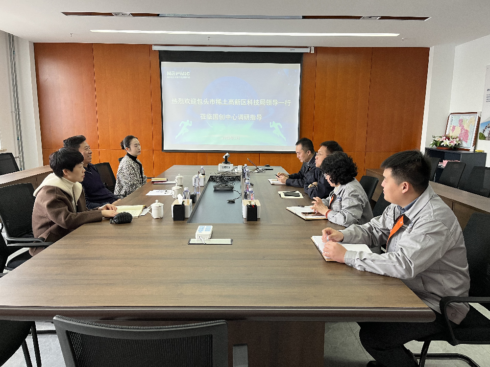 3月24日,包头稀土高新区科技创新局副局长刘相利一行莅临国家稀土功能材料创新中心调研。国创中心总经理刘威、副总经理邓沅等有关领导参加座谈。