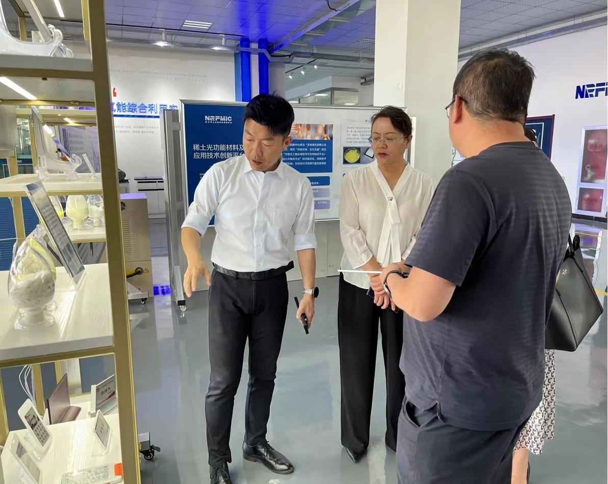 5月19日,西昌市委副书记、市长宋莉调研国家稀土功能材料创新中心。包头稀土高新区党工委委员、管委会副主任张强,国创中心总经理刘威、稀土光功能材料技术专家刘鹏陪同调研。