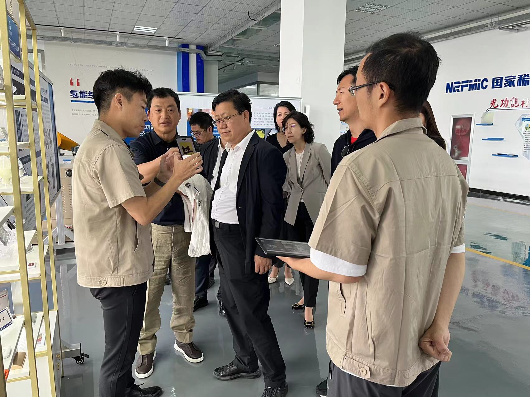 6月5日,包头市人民政府副市长张斌,万泰集团总裁王驰宇,浙江恒宸建设集团有限公司董事长王士云,海南和驰科技发展有限公司董事长岳海涛,雨林资本创始人李侃等人调研国家稀土功能材料创新中心。国创中心光功能材料技术专家刘鹏陪同调研。