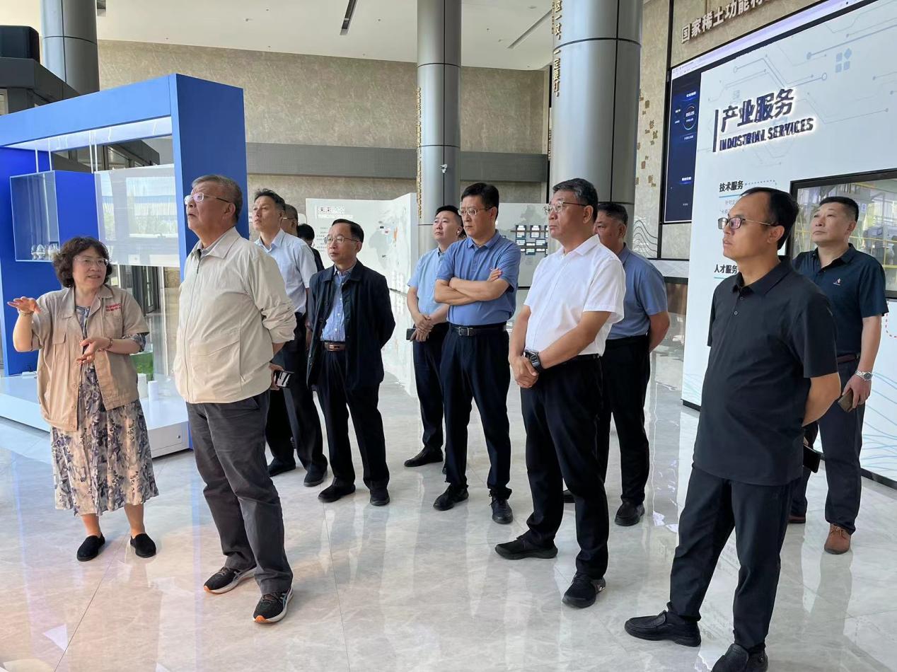 6月14日,第十四届全国政协常委、九三学社中央原副主席、九三学社内蒙古区委特邀首席专家赖明,九三学社中央委员会参政议政部经济建设与资源环境调研处处长刘相建,九三学社中央委员会参政议政部经济建设与资源环境调研处二级调研员张群,内蒙古自治区政协原副主席王焕承,内蒙古自治区研究室原常务副主任、内蒙古北宸智库研究中心首席专家文风,九三学社内蒙古区委主委、内蒙古交通投资 (集团)有限责任公司总经理于仁杰,内蒙古电力公司原副总工程师、北宸智库新能源专委会主任岳建华,内蒙古蒙戈利智业投资咨询(集团)有限公司董事长、北宸智库战略规划专委会专家赵景志等领导调研国家稀土功能材料创新中心。国创中心研发部部长刘金荣陪同调研。