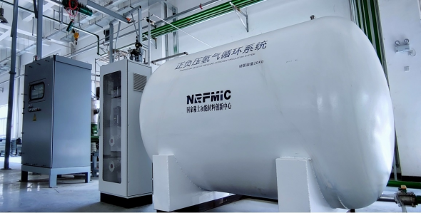 国创中心氢气循环供应固态储氢装置采用稀土储氢材料与固态储氢系统的匹配耦合新技术,创新设计了储氢系统的散热结构,可满足不同应用场景的储氢需求,形成了固态储氢热管控技术,有效提升储氢材料在吸/放氢过程中的热交换速率,达到国内领先水平。该产品设计制造储氢容量20kg的氢气纯化回收系统,突破氢气辅助设施限制,实现正负压吸放功能,可为用氢企业实现氢气的暂存和净化;同时,该产品是固态储氢材料特别是稀土系储氢材料应用在工业气体领域的重大开拓,能够极大增加固态储氢材料的用量;用氢企业使用该产品可降低氢气使用成本,并为其涉氢产品品质提升提供技术支撑。