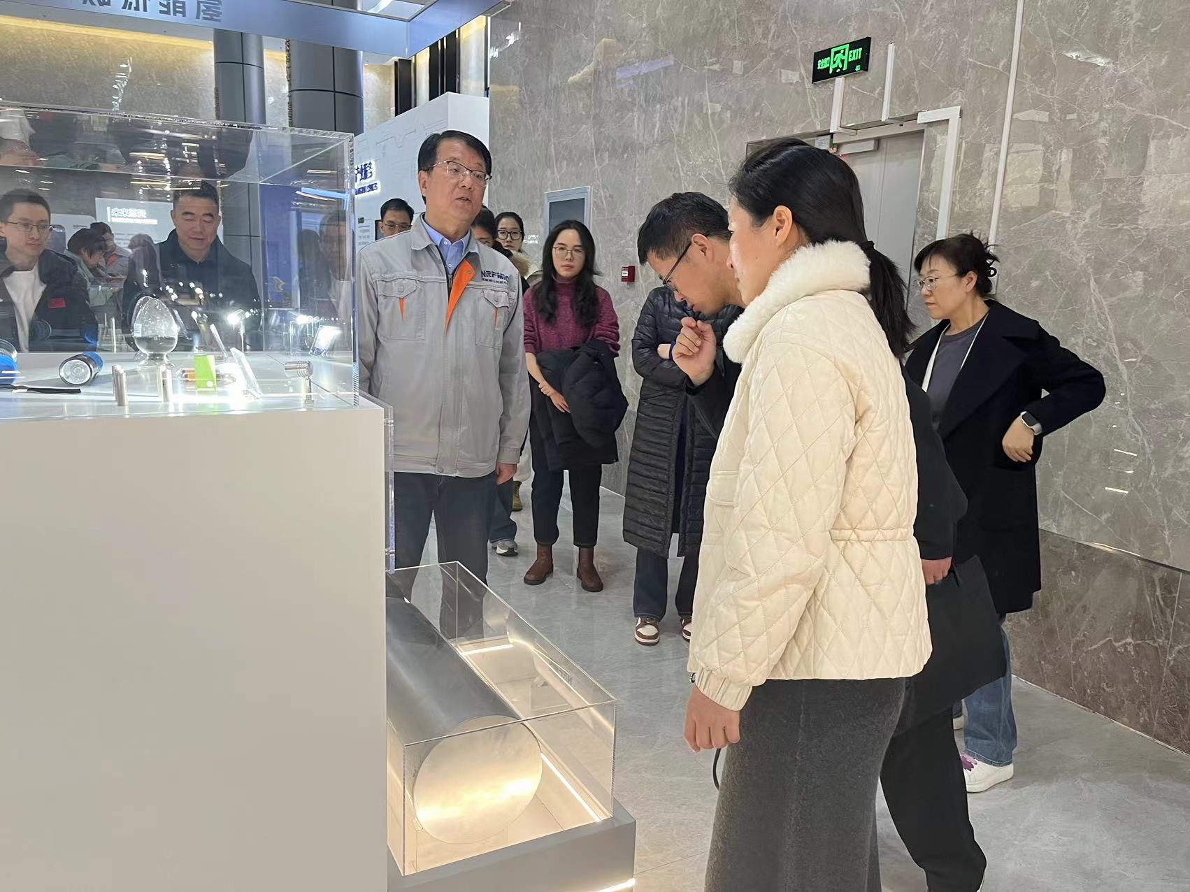 在展厅,张大勇首先介绍了国创中心的建设历程、功能定位、人才队伍及产业服务等内容,并介绍了中心独特的运行机制及管理模式。通过近几年的建设发展,国创中心在稀土永磁、储氢、光功能材料等研究方向布局建设了12条技术成果产业化示范线,形成了变革型高性能钐钴永磁材料、稀土系固态储氢装置及正负压氢气循环系统、稀土光源智慧照明、稀土电浆墨水屏幕、稀土基磷吸附材料等一批创新成果,其中大部分已推向市场。