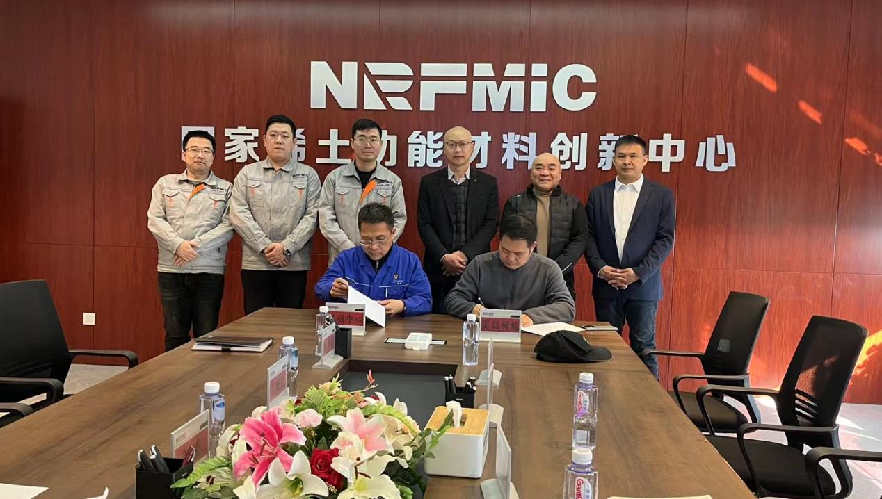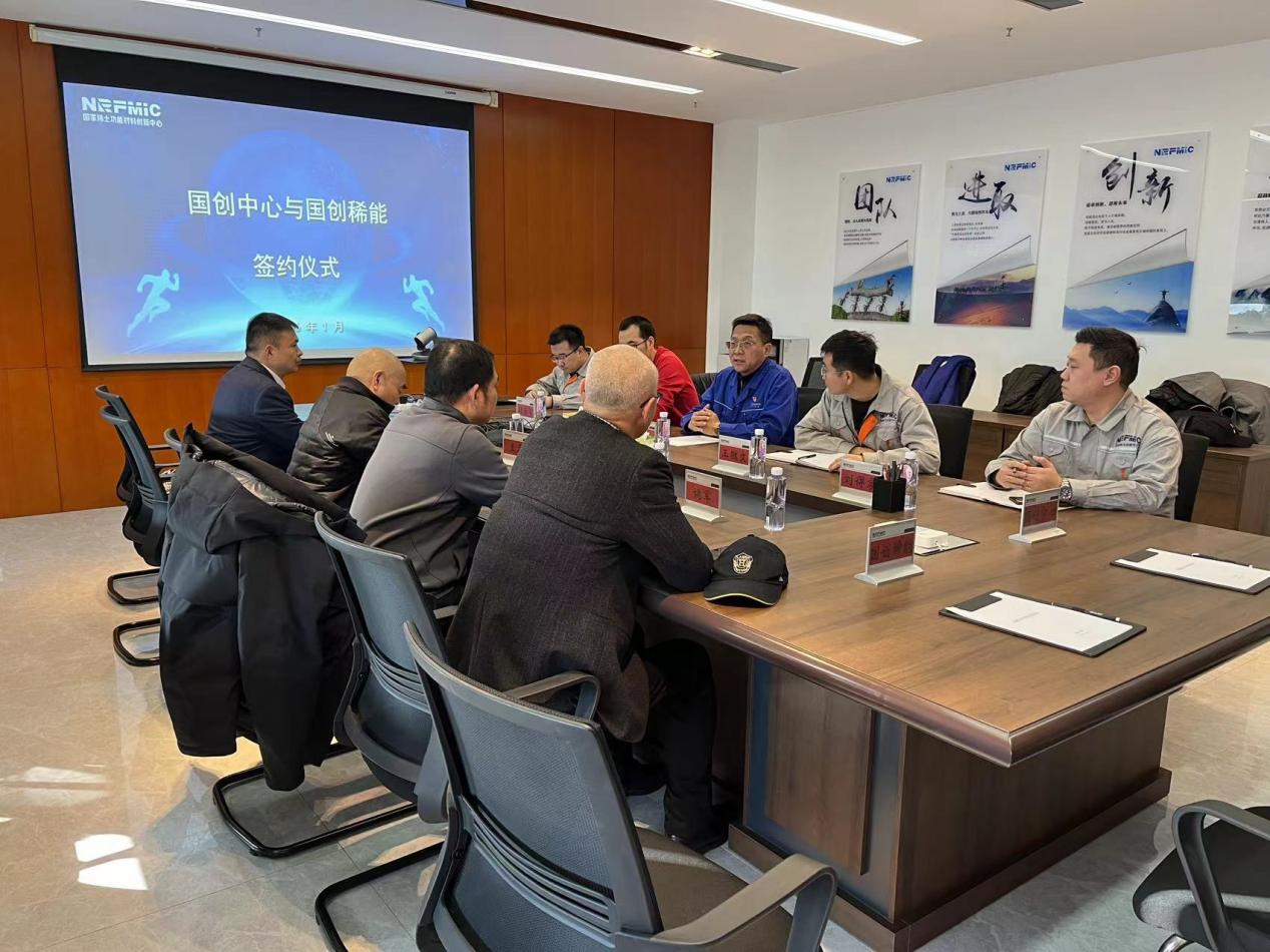 1月8日上午,国家稀土功能材料创新中心(以下简称“国创中心”)与国创稀能(上海)科技有限公司(以下简称“国创稀能”)在包头举行战略合作签约仪式。国创中心总经理刘威,国创稀能董事长王冬、首席执行官李冰等参加签约仪式。